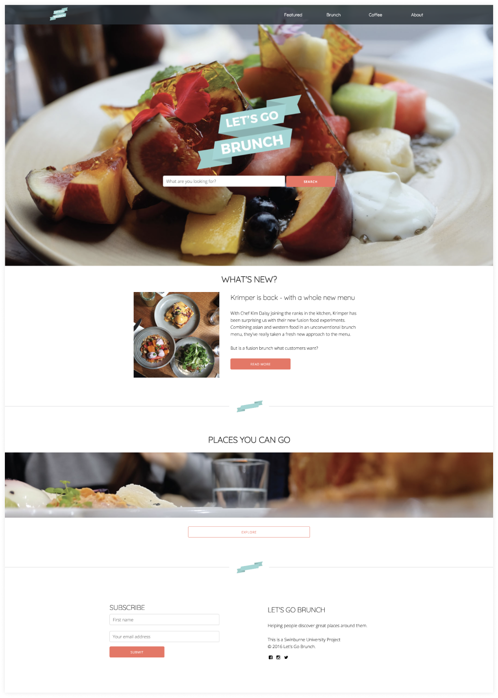A concept website focusing on brunch restaurants available in Melbourne. All images within the website feature brunch meals I've photographed throughout 2015.